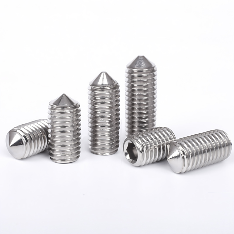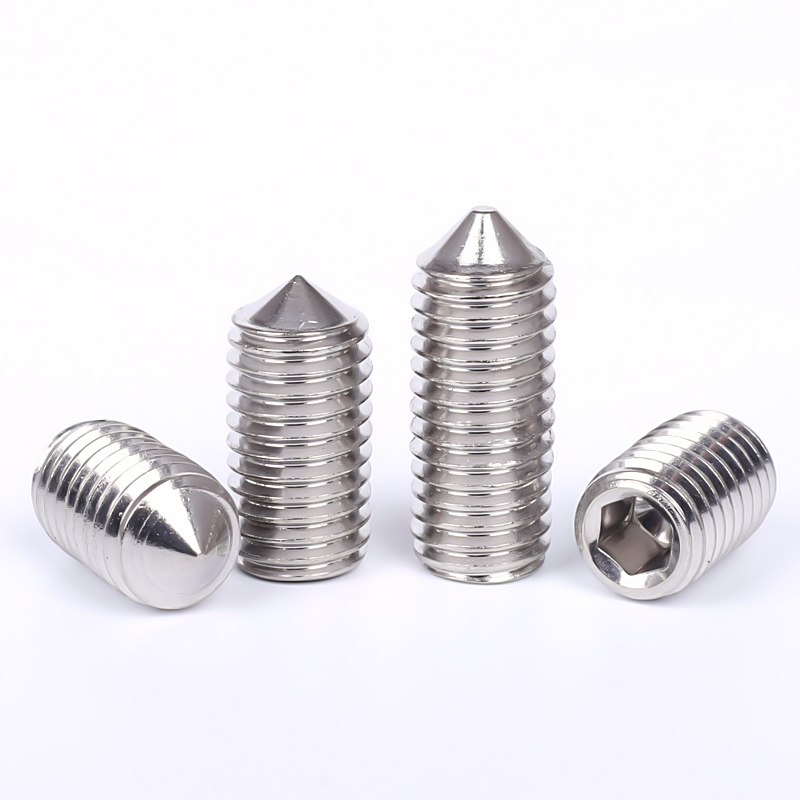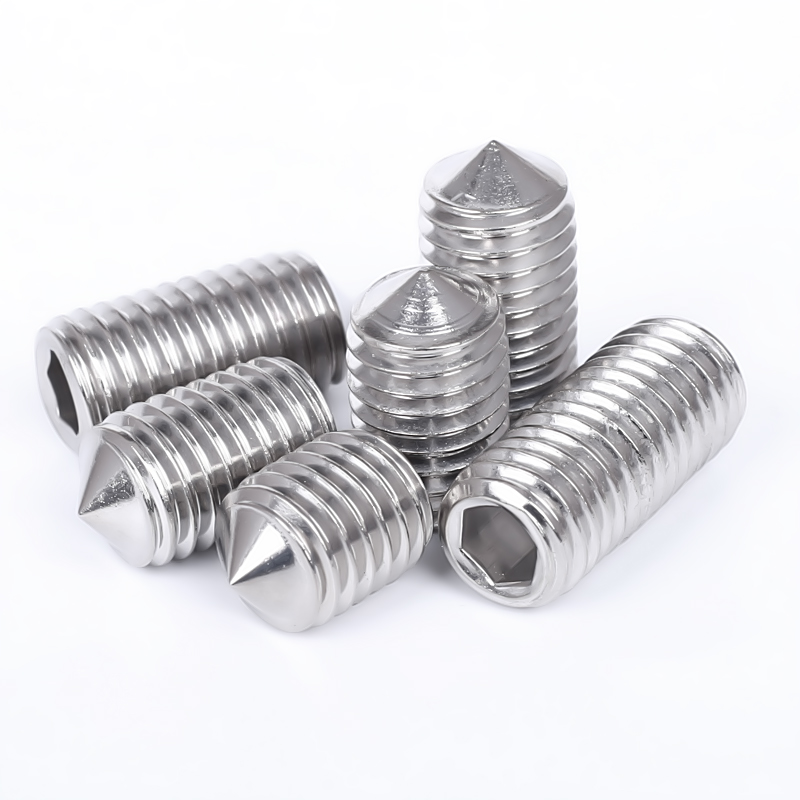 内六角尖端紧定螺丝又称内六角锥端机米或顶丝,属于连接件产品。无头,内六角槽,需用与之尺寸相符的六角扳手安装使用,无头的设计使被连接件更美观高档。