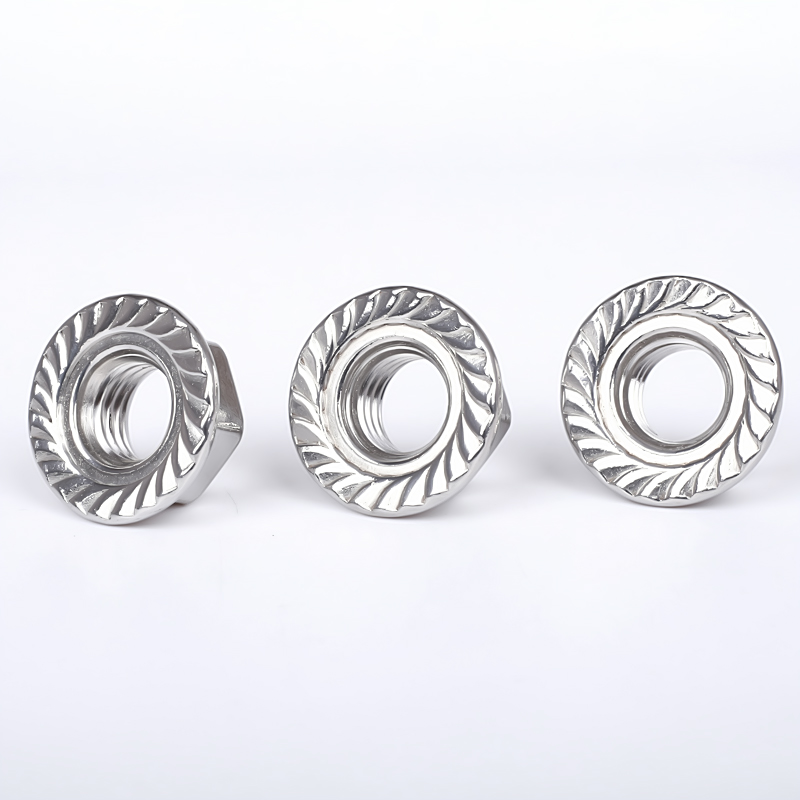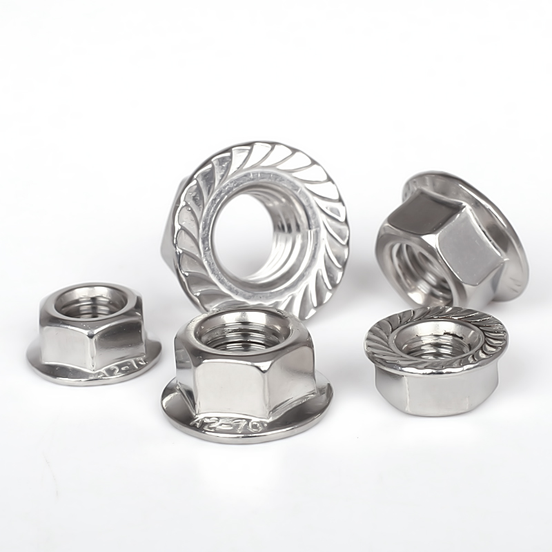 法兰螺母,也称带垫螺母,花齿螺母,六角法兰面螺母,法兰螺帽等。大多用在管道连接或者需要增加螺母接触面的工件上。