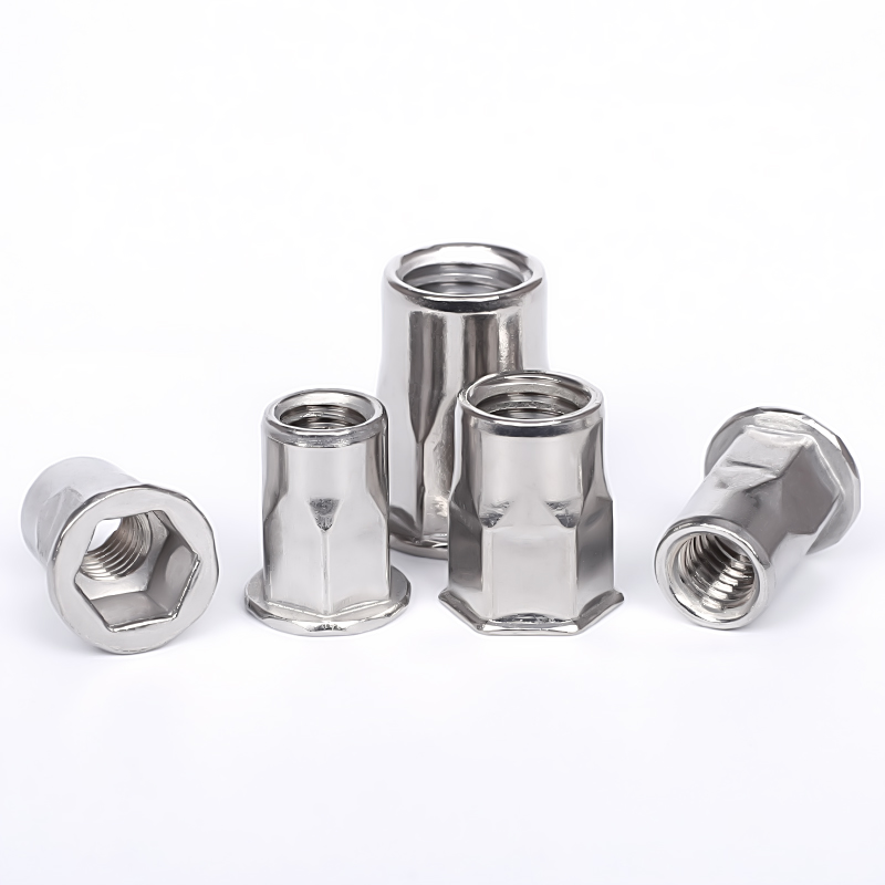 铆螺母,又称拉铆螺母,拉帽,用于各类金属板材、管材等制造工业的紧固领域,广泛地使用在汽车、航空、铁道、制冷、电梯、开关、仪器、家具、装饰等机电和轻工产品的装配上。为解决金属薄板、薄管焊接螺母易熔,基材易焊接变形,攻内螺纹易滑牙等缺点而开发,它不需要攻内螺纹,不需要焊接螺母、铆接牢固效率高、使用方便。